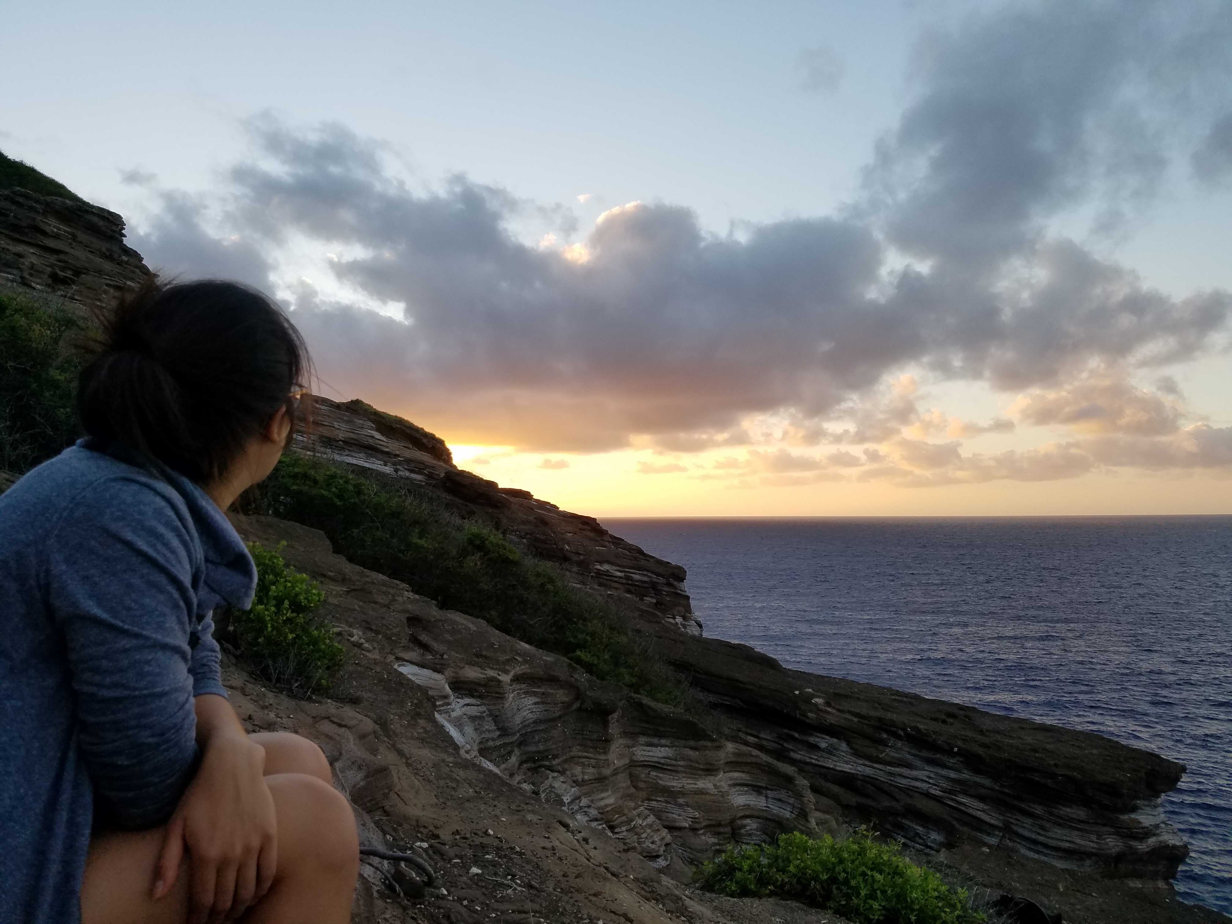 Intensity: If you’re brave enough to wake up at 5 am and drive east on H-1 for a half hour, park in a fancy neighborhood, miss the trail marker because it’s still pitch black and stroll into a stranger’s gated driveway with your headlamp glowing…then go for it! But in all seriousness, bee careful, especially if the rocks are slippery. Fortunately it didn’t rain the night before, so the rocks were okay to walk and climb on, and we didn’t go dangerously far. We were safe.