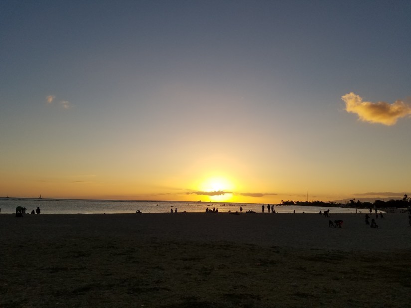 Third and last sunset on Oahu–Ala Moana Beach Park